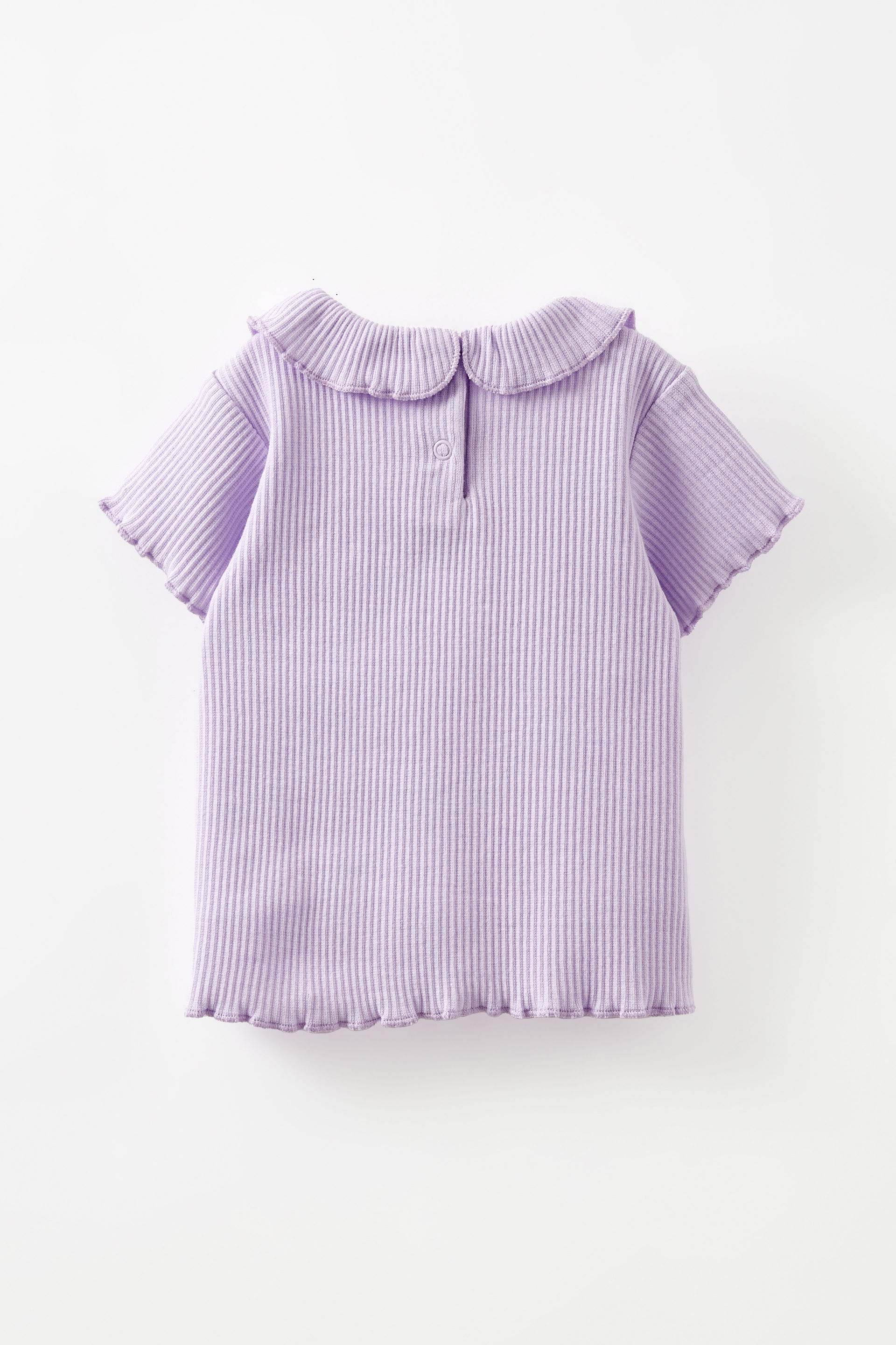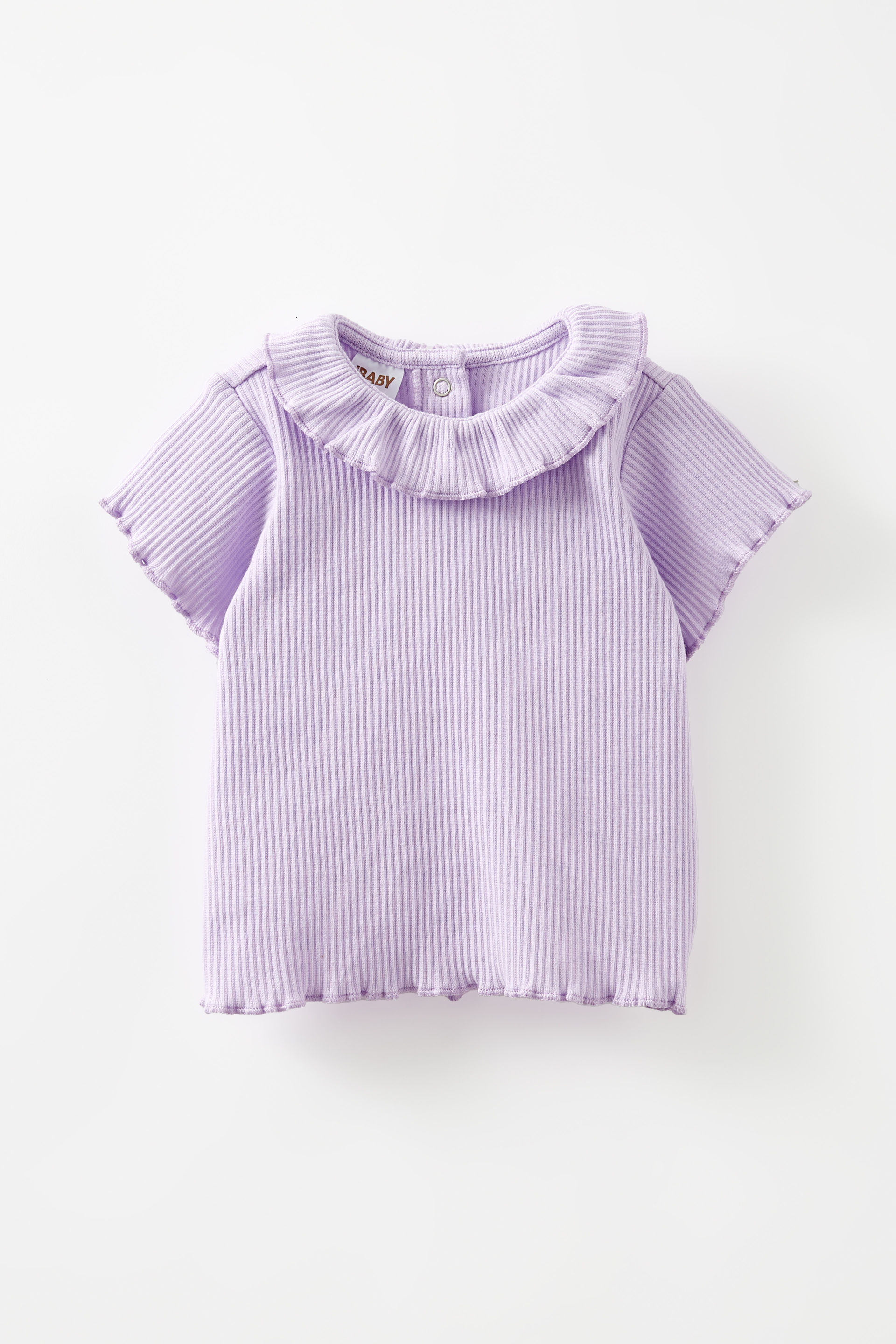 - Short sleeve with lettuce finish on sleeve and hemline.