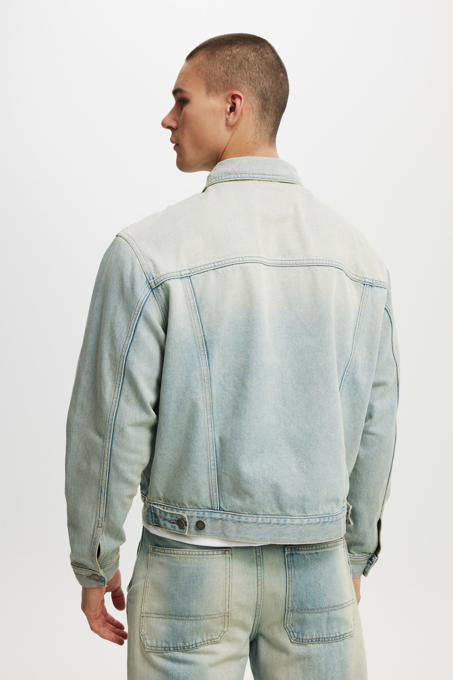 The Oversized Trucker Jacket takes inspiration from the classic vintage denim jacket, featuring side welt pockets and shank button closures, this jacket will become a staple for weekday and weekend.