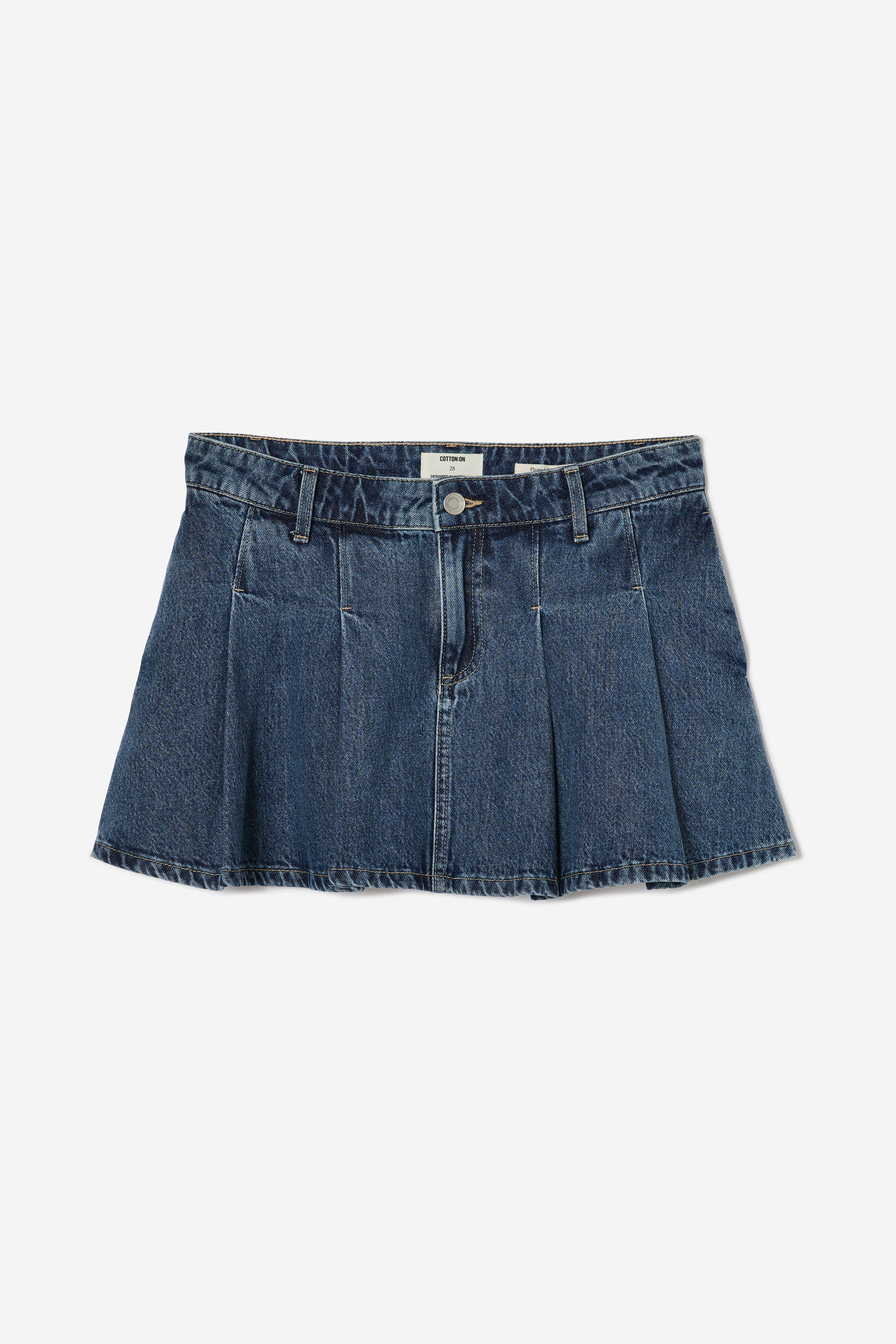 Pleated Denim Mini Skirt